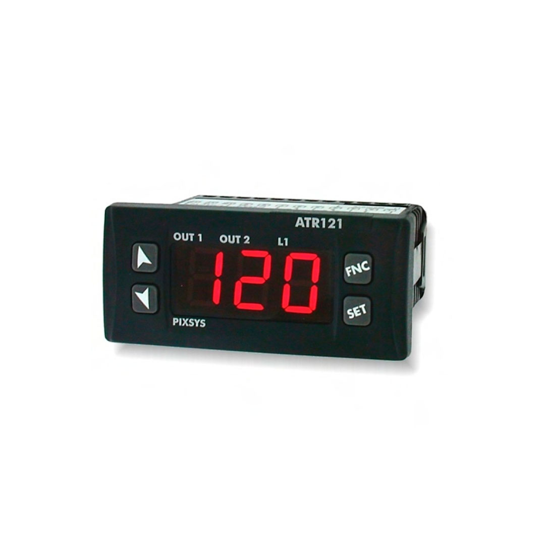 ATR121 Pixsys prikazovalnik in regulator CALEX z dvojno nastavljeno vrednostjo in 3-mestnim rdečim LED zaslonom. Vhod je nastavljiv za termočlene tipa J, K, S & R; Pt100; PTC1000; Ni100; NTC10k (običajno se uporablja v hladilni industriji); Pt500/Pt1000 (široko uporabljen v klimatskih napravah); 0 do 1 V; 0 do 10 V; 0 do 20 mA in 4 do 20 mA.
