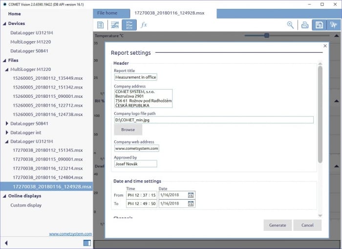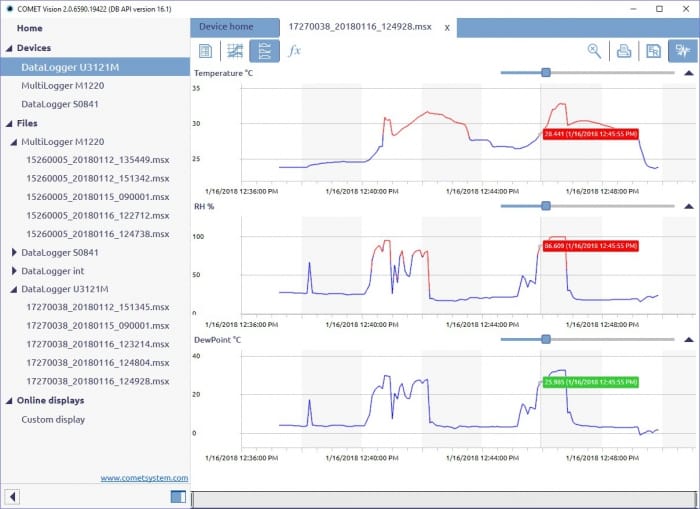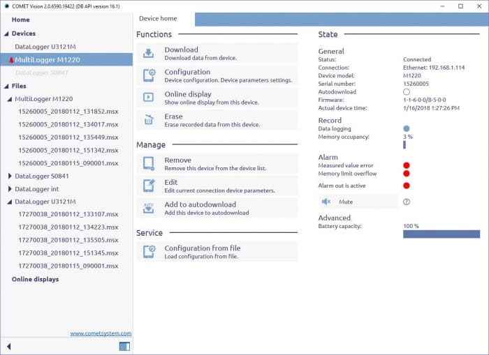 COMET VISION analitična programska oprema za dataloggerje vključučje dataloggerje: Sxxxx, Rxxxx, UxxxxM, Commeters Dxxxx in multiloggerje Mxxxx.
