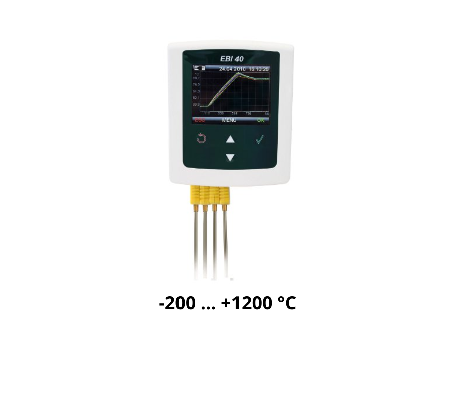 Poleg tega ima EBI 40 USB vmesnik za povezavo z računalnikom, kar omogoča enostaven prenos podatkov. Lahko ga napajate preko USB ali baterije in ima samodejni izklop zaslona, kar omogoča daljšo življenjsko dobo baterije. Zapisovalnik podatkov lahko izračuna temperaturne profile, ter tako olajša analizo podatkov in sprejemanje odločitev glede procesov.