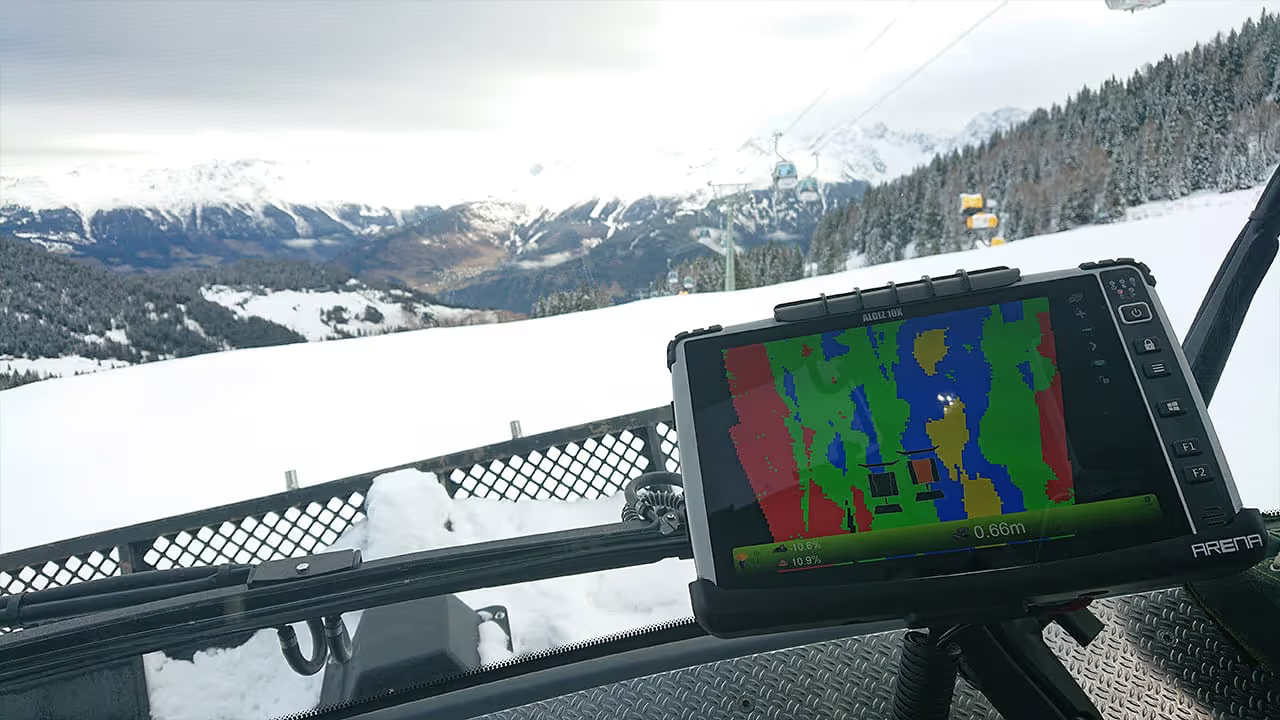 ARENA PistenManagement ponuja programsko opremo in geografske informacijske sisteme; njihov glavni poudarek je na upravljanju smučišč. Uporabljajo programsko opremo “3DMC” podjetja Topcon, enega vodilnih proizvajalcev rešitev GNSS. Programska oprema omogoča voznikom, da si ogledajo trenutne ravni snega in prehode, ki jih opravijo povezani snežni plugi, ki delujejo na smučarskem območju. Robustna tablica Algiz 10X deluje kot monitor in je pritrjena v kabini s pomočjo priključka za vozilo (ALG10X-05C) in nosilca RAM (RAM-101U-2461).